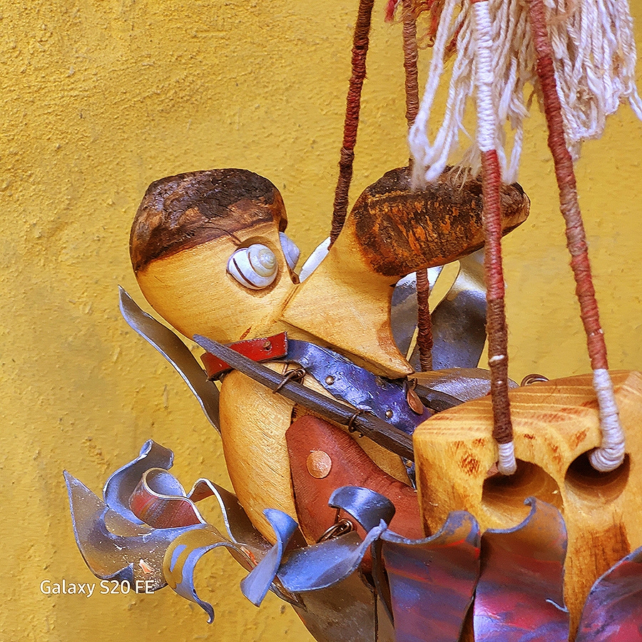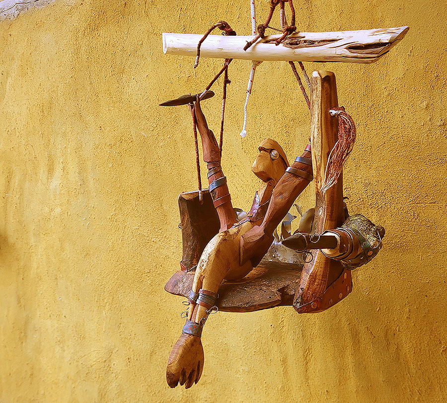 'Zee-tafel'--houten schijven in een ijzeren frame gegoten---