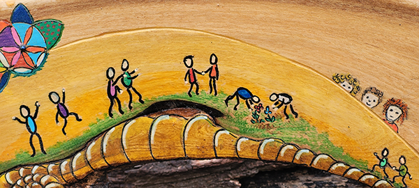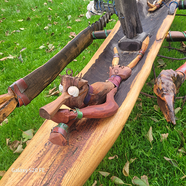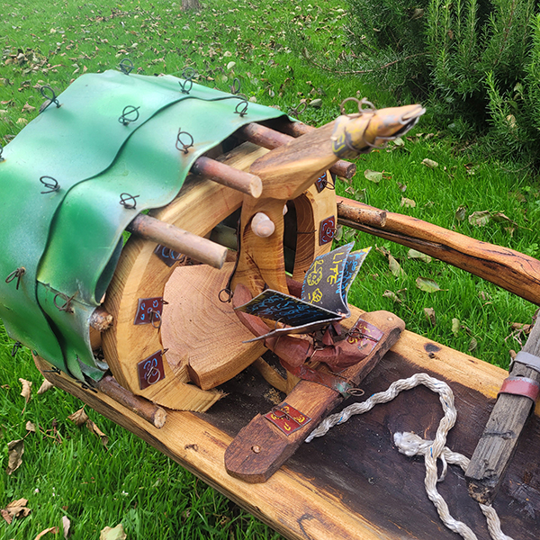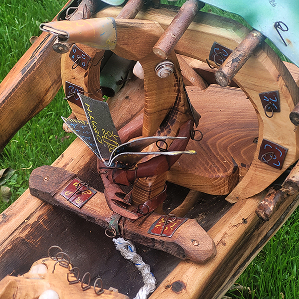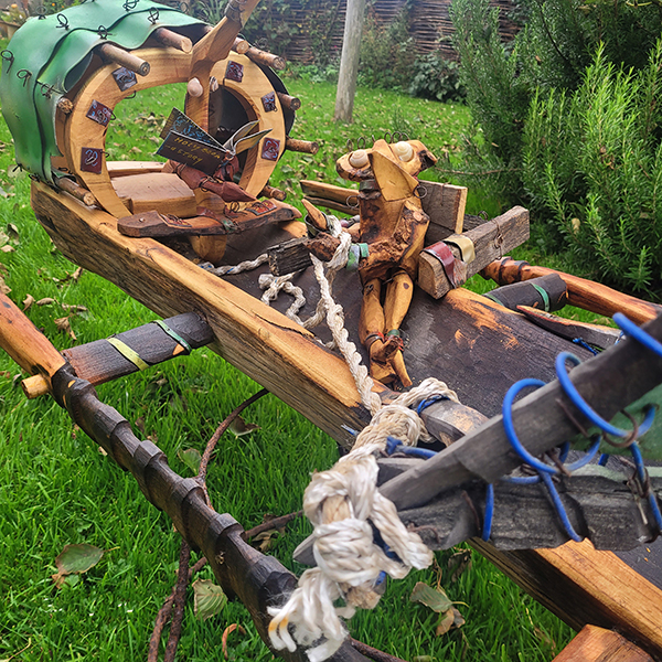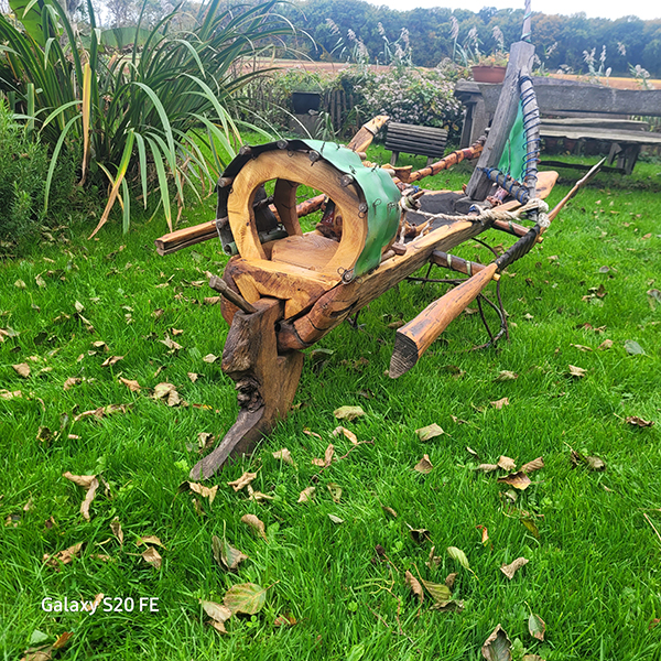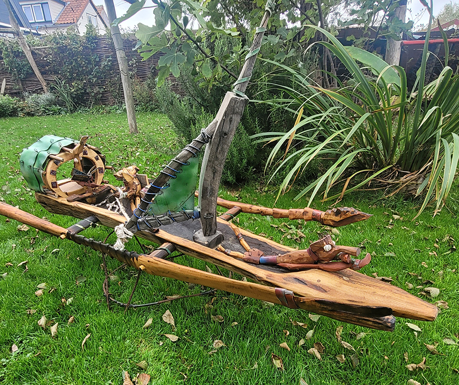 'Zee-tafel'--houten schijven in een ijzeren frame gegoten---
