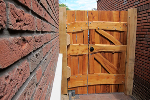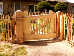 Poorten van acacia en kastanjehekwerk (en met speciaal beslag)